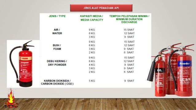 Pendidikan khas tingkatan 1 age: Adalah alat pemadam api portable yang dilengkapi dengan alat pengukur tekanan (pressure gauge) yang. Jadual 1 jenis spesifikasi air (water) dilabel dengan warna merah diisi dengan air bersih dan dicampurkan dengan sodium nitrat untuk mengelakkan air menjadi beku dan silinder menjadi berkarat jarak pancutan 4. Beli pemadam api dengan pilihan terlengkap dan harga terbaik. Adalah alat pemadam api portable yang dilengkapi dengan alat pengukur tekanan (pressure gauge) yang setiap saat dapat menunjukan adanya tekanan, sehingga memudahkan pengontrolan efektifitas kinerja tabung. Gunakan panduan ini untuk menentukan jenis alat pemadam api yang perlu anda beli untuk memastikan rumah atau tempat kerja anda selamat. Jenis apar berdasarkan sistem kerja. Terdapat 5 kelas jenis alat pemadam api. Medium yang boleh digunakan untuk pemadaman api jenis a adalah air dan debu kering. Merah jenis api yang boleh dipadamkan: Apar (alat pemadam api ringan) merupakan alat yang harus membutuhkan perhatian khusus. Berdasarkan bahan pemadam api yang digunakan, apar (alat pemadam api ringan) dapat digolongkan menjadi beberapa jenis. Sweep the extinguisher from sided to side/padamkan api dengan cara menyapu dari kedua sisi.